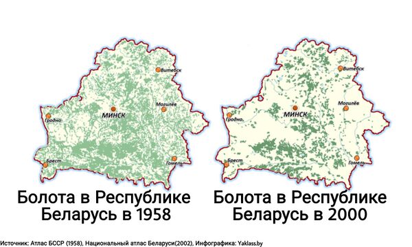 С осушением болот, на территории Белоруссии произошли климатические изменения. Мягкие зимы стали более морозными, а без болотной влаги лето стало намного засушливее[1][2].