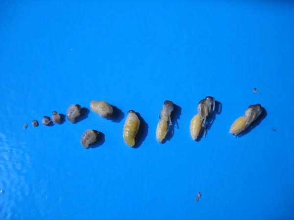 Порой встречаются личинки жуков-кожеедов и настоящих мух, которые питаются остатками пищи, шкурками и трупами личинок и имаго ос.