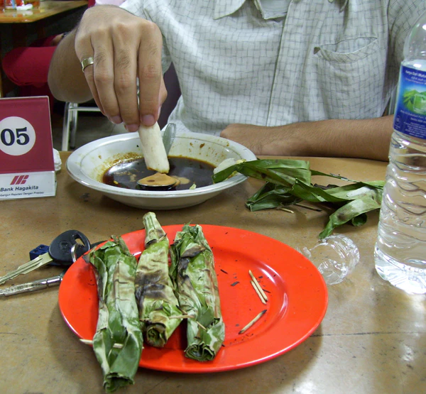 Готовый фарш разделяется на порции объёмом, как правило, не более 100 мл, которым придаётся продолговатая форма — типа небольших удлинённых котлет или колбасок. Каждая из них заворачивается в свёрток из свежего бананового листа. Реже для обертывания используются листья пальмы или некоторых других растений. Например, в некоторых районах Западной Малайзии и Сингапуре в дело нередко идут листья пандануса[1][2][3][4]. Перед завёртыванием листья обычно ошпаривают кипятком или паром, чтобы придать им бо́льшую эластичность. Для закрепления свёртков ранее использовались пальмовые волокна, в настоящее время широко применяются натуральные или синтетические нитки, а также скрепки и зубочистки[4][13].