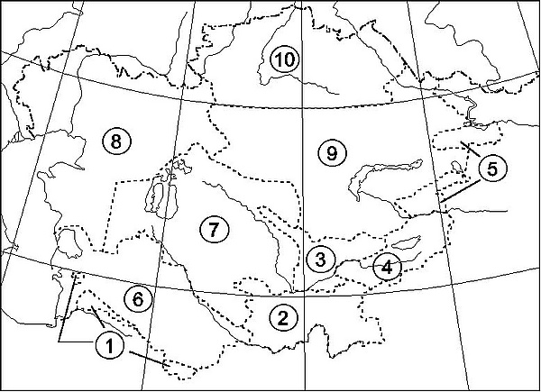 - Джунгарский Алатау и Тарбагатай (горная часть востока Алматинской и юга Восточно-Казахстанской областей Казахстана)