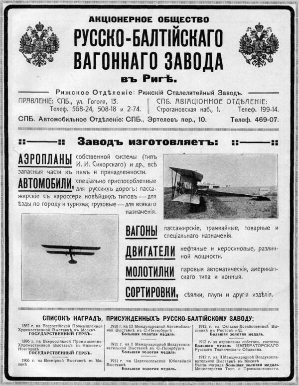 В июне 1910 года в Риге при Русско-Балтийском вагонном заводе (РБВЗ) были открыты автомобильный и авиационный отделы. Производство самолётов наладить так и не удалось, и в 1912 году было принято решение об организации авиационного филиала завода в Петербурге. Возглавить конструкторский отдел филиала по решению председателя Совета директоров Акционерного общества РБВЗ М. В. Шидловского был приглашён Игорь Иванович Сикорский.