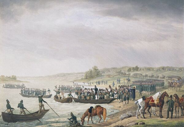 Переправа 220 тысяч солдат Великой армии под Ковно заняла четыре дня. Реку форсировали 1-й, 2-й, 3-й пехотные корпуса, гвардия и кавалерия.