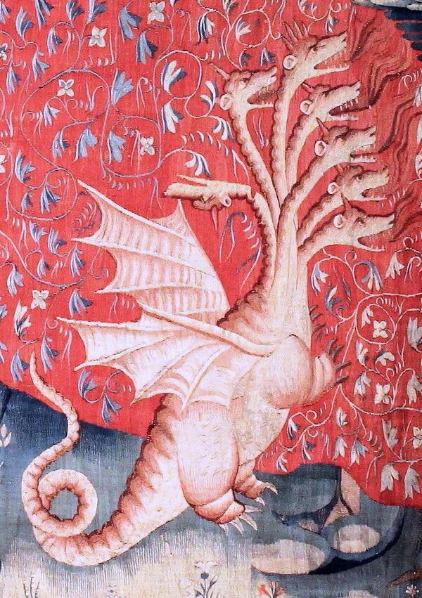 Этот дракон ранее появлялся в Ветхом Завете в различных формах, причем он часто он связан с водой. У Исайи его зовут Раав: «Не ты ли сразила Раава, поразила крокодила?», в церковнославянском — «змия» (Ис. 51:9). Он же — Левиафан: «Ты сокрушил головы змиев в воде. Ты сокрушил голову левиафана» (Пс. 73:13, 14), и Бегемот (Иов. 40:15—24). Поэтому здесь способность Дракона направлять воду неудивительна[7].