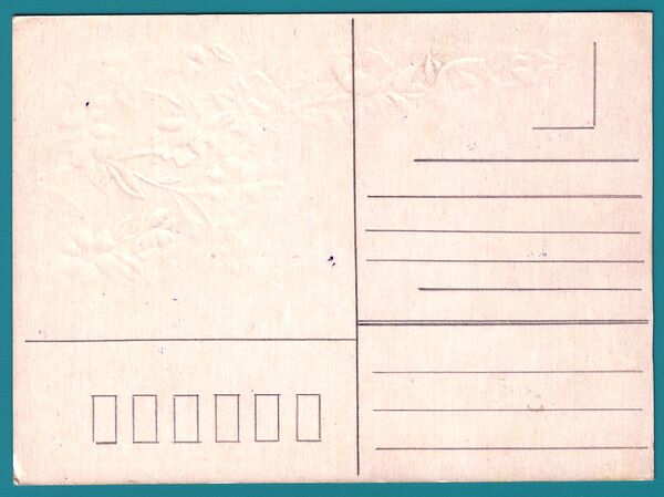 - В Советской Армии в условиях дефицита, особенно в «горячих точках» и Афганистане, красочных поздравительных открыток для отправки домой (в избытке же были обычно так называемые «армейские» конверты без рисунков и марок по 0,5 и 1 копейке), открытки иногда делали сами: брали красочный плакат либо красивые обои на плотной бумаге, вырезали из них «открытки» и рисовали на обратной стороне гра́фы для письма (слева), индекса (слева внизу), а́дреса туда (справа вверху) и обратного а́дреса (справа внизу). Открытки военнослужащих срочной службы пересылались бесплатно (почтовая марка не требовалась), и такие «самоделки» доходили до адресатов. Приведённая ниже неотправленная открытка разграфлена твёрдым карандашом на обратной стороне красочной тиснёной бумаги в 1980-х годах.