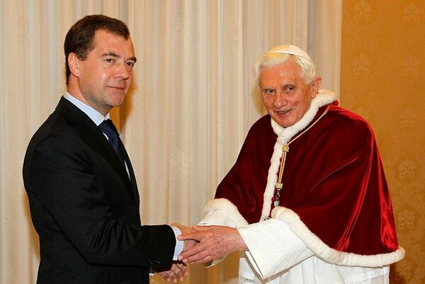 В начале декабря 2009 года президент России Дмитрий Медведев совершил краткий рабочий визит в Ватикан, в ходе поездки президент побывал на аудиенции у папы римского Бенедикта XVI. По итогам встречи Дмитрий Медведев поручил установить полноценные дипломатические отношения между Российской Федерацией и Святым Престолом[14].