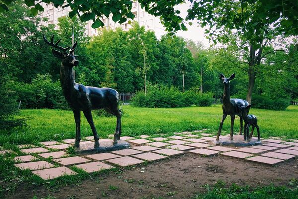 Изначально на этой территории располагались яблоневые сады совхоза сельскохозяйственной академии имени К.А. Тимирязева «Отрадное»[29]. В 1980-е годы во время массовой жилой застройки района между проложенными здесь новыми улицами Хачатуряна и Санникова был обустроен парк. До 1991 года он носил имя революционера Сергея Кирова – здесь стоял памятный бюст в его честь, который впоследствии снесли. Долгие годы парк оставался обычной зелёной зоной, связывающей жилые кварталы района со станцией метро «Отрадное». В 2018 году здесь прошло комплексное благоустройство[30]. На территории есть три детские площадки с игровыми комплексами в стиле авиации и космонавтики. В спортивную зону входит баскетбольная и волейбольная площадки, памп-трек площадью 390 кв. м (в 2021 году ликвидирован), площадка для игры в футбол, [31] и две воркаут-зоны с турниками, тренажёрами и столами для настольного тенниса с навесами от непогоды. В парке расположена сцена для выступлений с танцполом – последний выложен чёрной и белой плиткой в виде клавиш пианино. Вдоль главной аллеи парка, Аллеи славы, размещены стенды с портретами ветеранов Отрадного. Здесь же находится памятная стела «Журавли нашей памяти»[32], установленная в честь героев района, павших в вооружённых конфликтах. Для спокойного отдыха на территории также есть зона с шезлонгами.