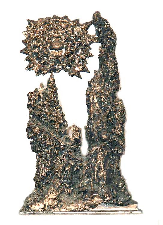 Композиция представляет собой два вертикальных архитектурно выстроенных пирамиды разной высоты. Левая пирамида расположена выше правой. Пирамиды соединены текучими объёмами. На их вершинах установлены стилизованные модели светил. Светила выполнены в виде трёх дисков-лучей с плоскостным изображением полулуны и объёмного полусолнца. Работа установлена на одноступенчатой подставке. Тонировка произведения выполнена под бронзу. Размеры композиции: высота — 45 см, ширина — 25,3 см, глубина — 12,5 см.