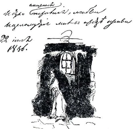 Друзья А. С. Пушкина, готовя журнал к печати, учли пожелание Николая I сопроводить публикацию стихотворения факсимильным воспроизведением рукописного текста с рисунком автора, на котором изображён старец в келье[5][6].