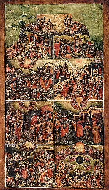 Иконы, созданные на основе текстов молитв, появляются в русской иконописи достаточно поздно, с XVII века. Обычно композиция разделена на регистры, либо на отдельные части, соответствующие частям молитвы[75].