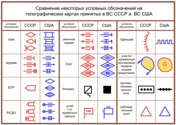 - нанесения на рабочие документы (топографическая карта) условных знаков, как то: