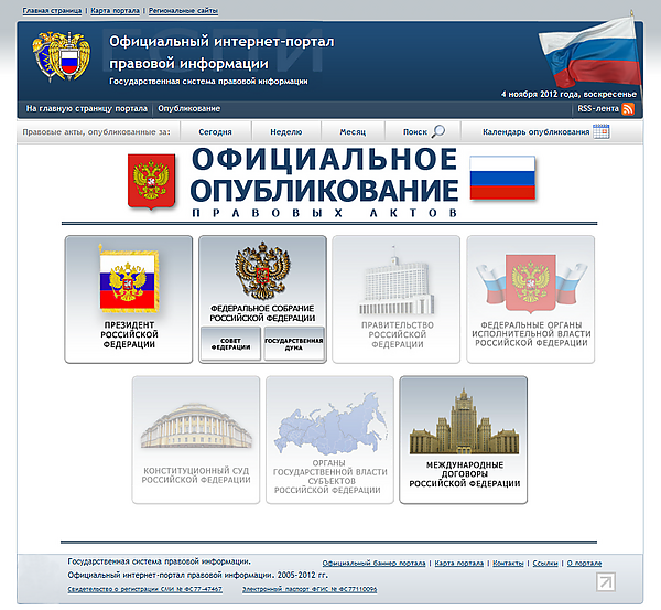 - Официальный интернет-портал правовой информации. Дата обращения: 4 ноября 2012. Архивировано 23 ноября 2012 года.