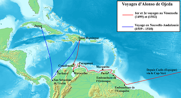 Алóнсо де Охéда (исп. Alonso de Ojeda; около 1466 — 1515) — один из спутников Колумба, который в мае 1499 году возглавил экспедицию, открывшую остров Кюрасао, озеро Маракайбо, берег Гвианы, устье реки Ориноко и бухту, названную за сходство с Лагуной «малой Венецией»[2]. Среди его спутников были купец Америго Веспуччи, картограф Хуан де ла Коса и нотариус Родриго де Бастидас. Штурманом в этой экспедиции был Америго Веспуччи.