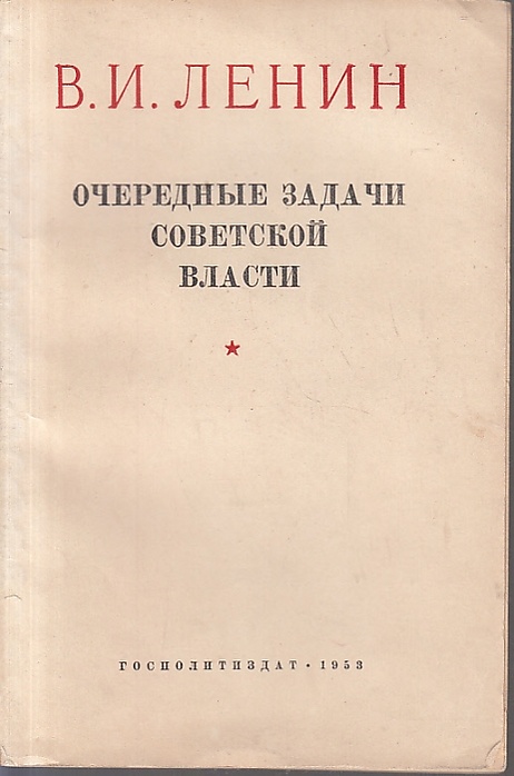 - Очередные задачи советской власти // Отоми — Пластырь. — М. : Советская энциклопедия, 1975. — (Большая советская энциклопедия : [в 30 т.] / гл. ред. А. М. Прохоров ; 1969—1978, т. 19).