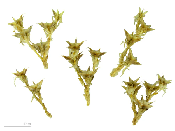 Небольшое голое многолетнее растение с тонким корневищем и многочисленными приподнимающимися стеблями, покрытыми мелкими толстыми листьями.