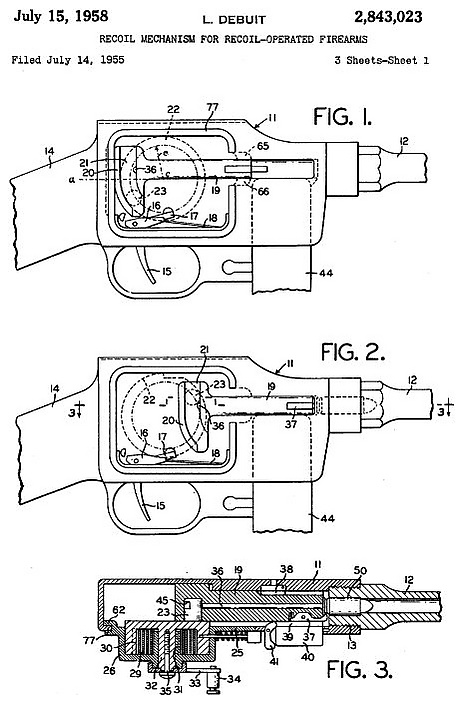 В конце 40 гг XX- го века Луи Дебюи, работавший в компании Etablissements Merlin Gerin начал работу над новым пистолетом пулеметом. Он хотел создать оружие компактной и портативной конструкции, которое характеризуется небольшой отдачей. Для достижения этих целей, конструктор решил разработать оружие весьма необычной формы и принципа работы. Он применил полусвободный затвор. Использовалась конструкция опытного единого пулемёта, представленного конструктором фирмы Gustloff-Werke Виктор Барнитцке на конкурс одновременно с MG42. Движение затвора при помощи зубчатой рейки и шестерёночного механизма передавалось двум маховикам, раскручивавшимся в обратные стороны, нейтрализуя энергию отдачи (пулемёт не был принят из-за быстрого износа рейки и шестерён).