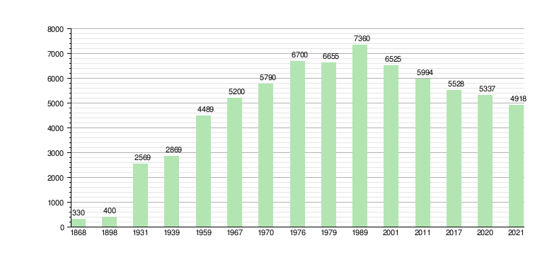 В 2021 году в городе проживало 5 286 человек, из них:[14]