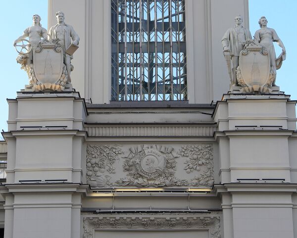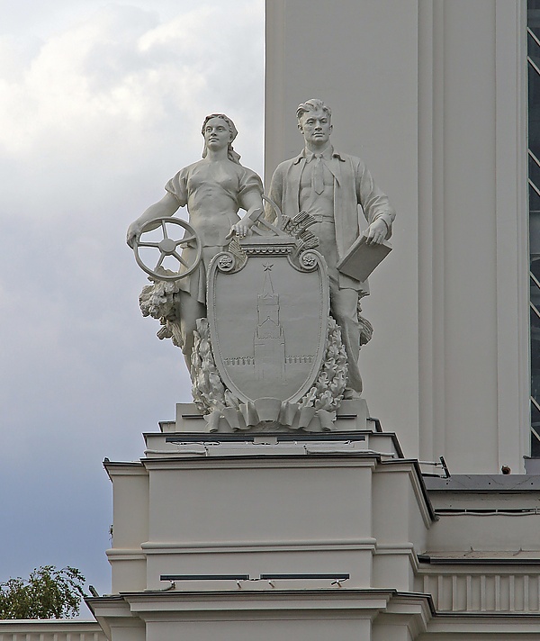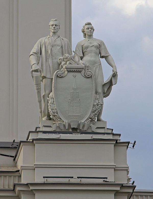 Павильон 1939 года был одним из немногих, выстроенных в капитальных конструкциях с использованием мрамора, терракоты, керамики, нержавеющей стали. Его украшали рубиновая звезда на ризалите и барельеф на фасаде.