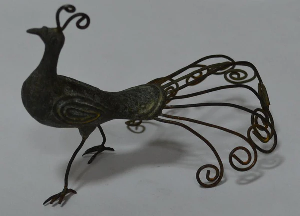 Скульптура представляет собой стилизованное изображение павлина. Фигура изображает птицу с поднятой вверх головой, украшенной двумя проволочными завитками. Левая лапа выдвинута вперёд. Длинный проволочный хвост с завитками на концах служит дополнительной опорой композиции. Места крыльев и конца хвоста оформлены в виде борозд. Размер скульптуры составляет 10×15,4×8,4 см.