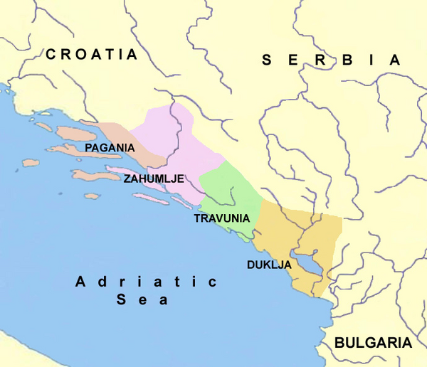 Восточнее Пагании, за Неретвой, начиналось княжество Захумье (нынешняя Герцеговина). К северо-западу же от Пагании, по словам Константина, лежала Хорватия.