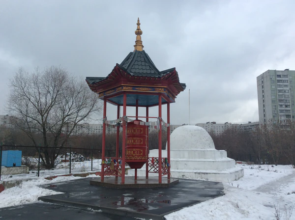 Пагода рая является одним из строений Духовно-просветительского комплекса российских традиционных религий в районе Отрадное, Нововладыкинский проезд владение 15, города Москвы. Первоначально была установлена рядом со временной ступой, за пределами строящегося буддийского храмового комплекса «Тубден Шедублинг». В декабре 2024 года, после окончания работ по благоустройству территории храмового комплекса, молитвенный барабан был перенесён на территорию комплекса, в новую Пагоду Рая. При этом, старая пагода была демонтирована.