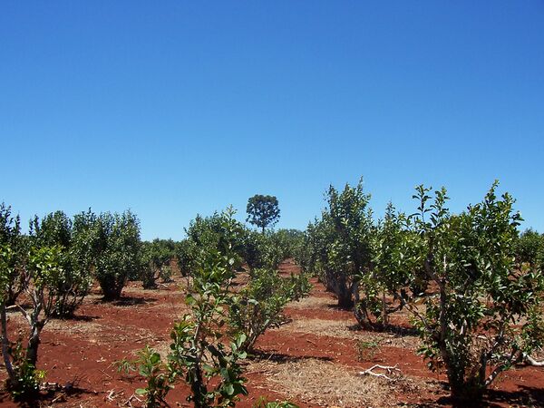 Плотная посадка не только увеличивает урожайность, но и лучше подходит для механического сбора урожая. [7] B год с одного дерева можно собрать 30—38 кг сухих листьев. Урожай с одного дерева собирают каждые три года, чтобы растение не «теряло силу». В XVII веке иезуиты пришли в Парагвай и основали первые большие плантации.
