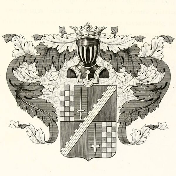 Щит разделен на четыре части, из них в первой части правая половина составлена из золотых и красного цвета шахмат, а в левом голубом поле изображен серебряный меч острием вверх. Во второй и третьей части, по красному полю, диагонально к левому верхнему углу, означена серебряная зубчатая стена. В четвёртой части, в правом голубом поле, серебряный меч, а левая половина имеет шахматное поле таких же цветов, как в первой части.