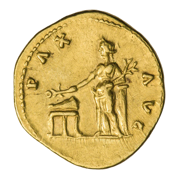 Изображение божества Пакс часто присутствует на монетах Августа как в доактийский период, так и после его завершения. Видимо, это отражает необходимость мира и спокойствия в государстве[7]. Монеты с Пакс чеканились и у Домициана[8].