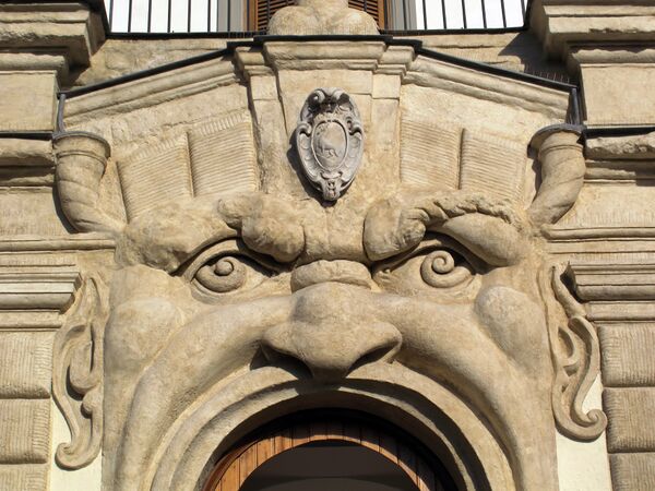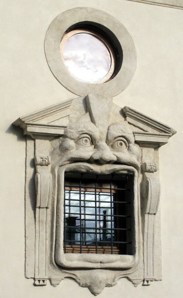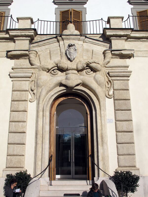 Федерико Цуккаро был одним из самых оригинальных архитекторов и живописцев итальянского маньеризма. Собственный дом архитектора обычно является его своеобразным автопортретом, «визитной карточкой», в которых художник «сам себе хозяин». Поэтому и палаццетто стало своеобразным выражением творческих интересов автора. Фасад здания в сторону Виа Грегориана оформлен причудой (итал. capriccio): огромным порталом в виде чудовищного маскарона с раскрытой пастью, и столь же причудливых маскаронов наличников окон (1593). Считается, что эта идея родилась под влиянием гротов и скульптур Парка Бомарцо, или «Парка чудищ» (Parco dei Mostri), такой же маньеристской затеи князя Орсини (1550-е гг.). Однако и сам Цуккаро создавал подобные причуды, в частности, в своих иллюстрациях к «Аду» Данте, чем оказывал влияние на других художников своей эпохи[3].
