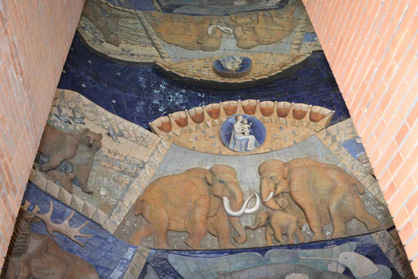 Экспозиция зала посвящена ранним этапам эволюции биосферы, систематике беспозвоночных животных и растений[2]. Зал украшен резьбой по белому камню художника Е. И. Шеловой, скульптурной композицией художника С. А. Казанского, керамическим панно М. В. Шаховской-Фаворской.