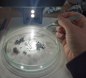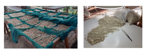 - Сухое просеивание (англ. Dry Screening) предполагает прохождение образцов седимента через гнездо сит, обычно размером 5-0,5 мм. Этот метод обработки часто используется для извлечения высушенных растительных остатков, поскольку использование воды может ослабить или повредить этот тип макроокаменелостей и даже ускорить их разложение[1][17][19].