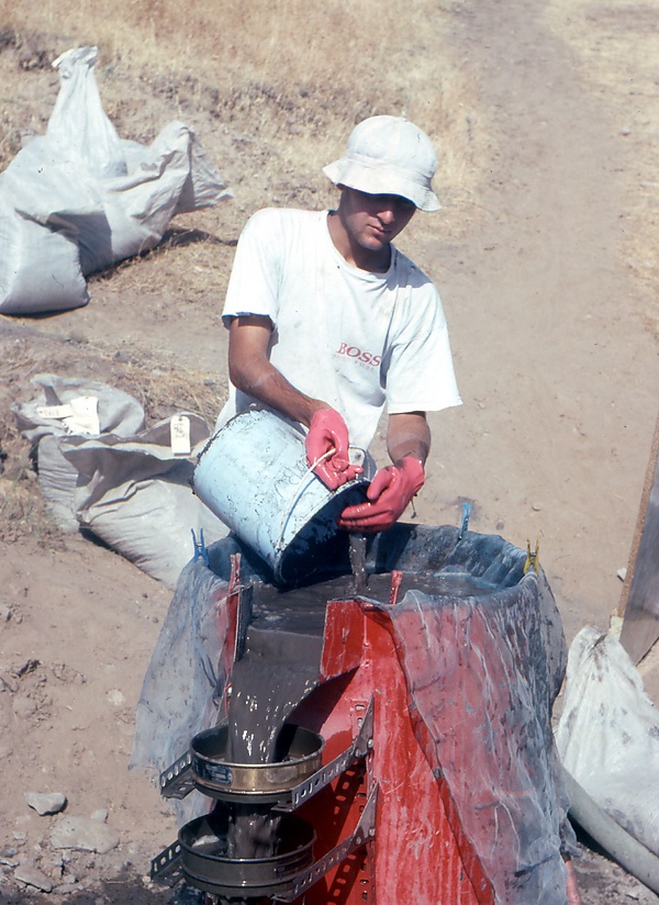- Метод промывки (англ. the Wash-Over technique) была разработана в Великобритании как эффективный способ обработки образцов, находящихся в воде. Осадок высыпают в ведро с водой и осторожно перемешивают вручную. Когда осадок эффективно разобьётся и органические вещества окажутся в воде, всё содержимое ведра, за исключением тяжёлых неорганических веществ на дне, осторожно выливается на сетку 300μ. Затем ведро опустошается, и органическое вещество тщательно смывается с сетки обратно в ведро. Добавляется ещё воды, после чего содержимое снова выливается через гнездо сит[19].