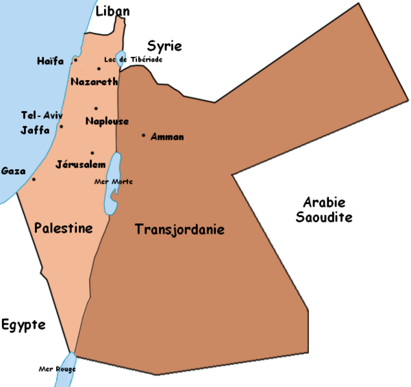 В результате Первой мировой войны в апреле 1920 года на конференции в Сан-Ремо Великобритания добилась мандата на управление территорией Палестины (утверждён Лигой Наций в июле 1922 года). Английская подмандатная территория Палестина включала в себя также территорию, ныне занимаемую Иорданией. 2 ноября 1917 года английское правительство опубликовало декларацию Бальфура, в которой содержалось обещание содействовать созданию в Палестине «национального очага для еврейского народа». Однако в феврале 1922 года Уинстон Черчилль, министр колоний Великобритании, бывший противником реализации принципов декларации Бальфура, принял решение отдать ¾ территории мандата под отдельный эмират Трансиордания, из которого впоследствии (в 1946 году) было образовано независимое королевство Трансиордания[42].