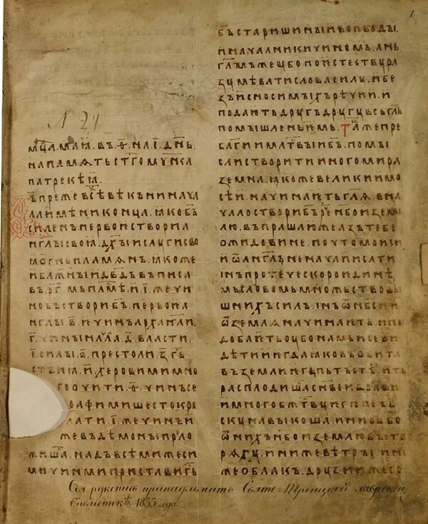 - Рукопись № 38. (2014). Палея (от греч. palaiós — ветхий), напис. 1406 года, устав. в два столбца, в лист, 208 л. Фонд 304.I. Главное собрание библиотеки Троице-Сергиевой лавры. Полный текст списка.