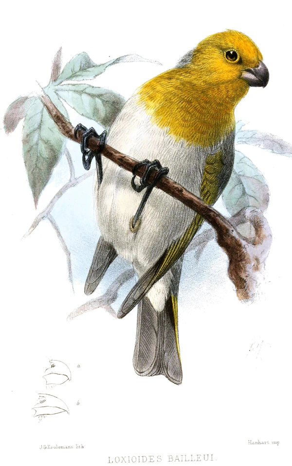 Палила — критически исчезающий вид гавайских вьюрковых с клювом, напоминающим вьюрка, относящийся к группе гавайских цветочниц. Отличается золотисто-жёлтой головой и грудью, светлым брюшком, серой спиной и зеленоватыми крыльями и хвостом. Вид тесно связан в экологическом отношении с деревом мамане и стал исчезающим из-за уничтожения этих деревьев и сопутствующих сухих лесов. Первый экземпляр палила был собран в 1876 году на ранчо Гринвелл на Большом острове Пьером Этьеном Теодором Байё (1828–1885), который был французским консулом на Гавайях с 1869 по 1878 год. Типовой экземпляр (№ 1876-645) хранится в Национальном музее естественной истории в Париже.