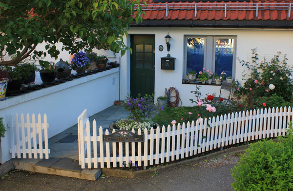 Палисадник обычно рассечён дорожкой, ведущей к входу в дом, а в стилевом решении связан с архитектурой дома. Палисадник используется для создания каменистых горок, цветников, композиций из декоративных кустарников и деревьев. Нередко композиция палисадника основана на двух доминантных растениях, растущих по разные стороны дорожки, и дополняющих их более мелких цветов[2].