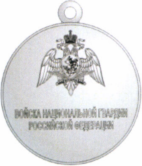 На реверсе медали в верхней части размещено изображение геральдического знака — эмблемы войск национальной гвардии РФ, в нижней части в две строки помещена надпись «ВОЙСКА НАЦИОНАЛЬНОЙ ГВАРДИИ РОССИЙСКОЙ ФЕДЕРАЦИИ»[2].