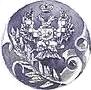 На оборотной стороне в верхней части рельефное изображение герба Российской империи в обрамлении картушей, в центре — лавровая ветвь.