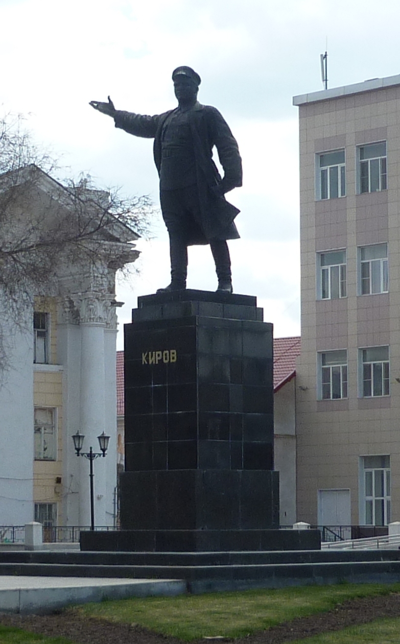 | 1939 | Памятник С. М. Кирову | Проект Н.В. Томского с небольшими изменениями | Средства на создание и установку памятника были собраны по инициативе рабочих и служащих. Изготовление памятника по проекту скульптора Пинчука было заказано в 1938 году у ленинградского завода художественного литья «Монументскульптура». Так как скульптор не успевал создать памятник к пятой годовщине со дня гибели революционера, трест «Монументскульптура» предложил использовать готовую фигуру Кирова, автором которого был скульптор Николай Васильевич Томский. Постамент памятника выполнен из чёрного гранита, облицованного мрамором. Фигура Сергея Мироновича Кирова отлита из бронзы. | Сквер им. С.М. Кирова | Объект культурного наследия регионального (местного) значения | |