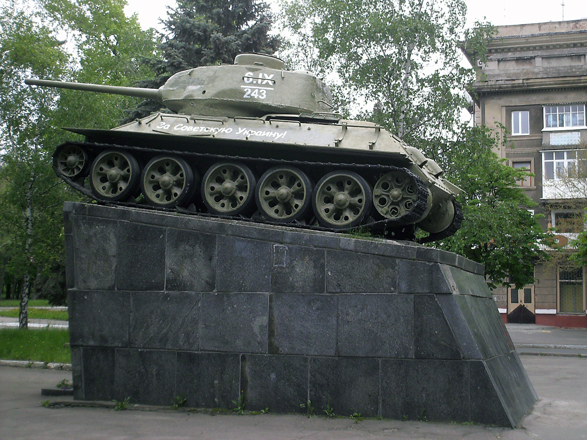 7 мая 1975 — Освободителям города: Воинам 3-го танкового корпуса, 59-й Гвардейской стрелковой дивизии, 5-й Гвардейской отдельной мотострелковой бригады, 243-го отдельного танкового полка. Танк Т-34 — ул. Дружбы, напротив входа в парк Пушкина, архитектор В. Е. Роговец (ГАП Краматорского отдела «Донбассгражданпроекта»)
