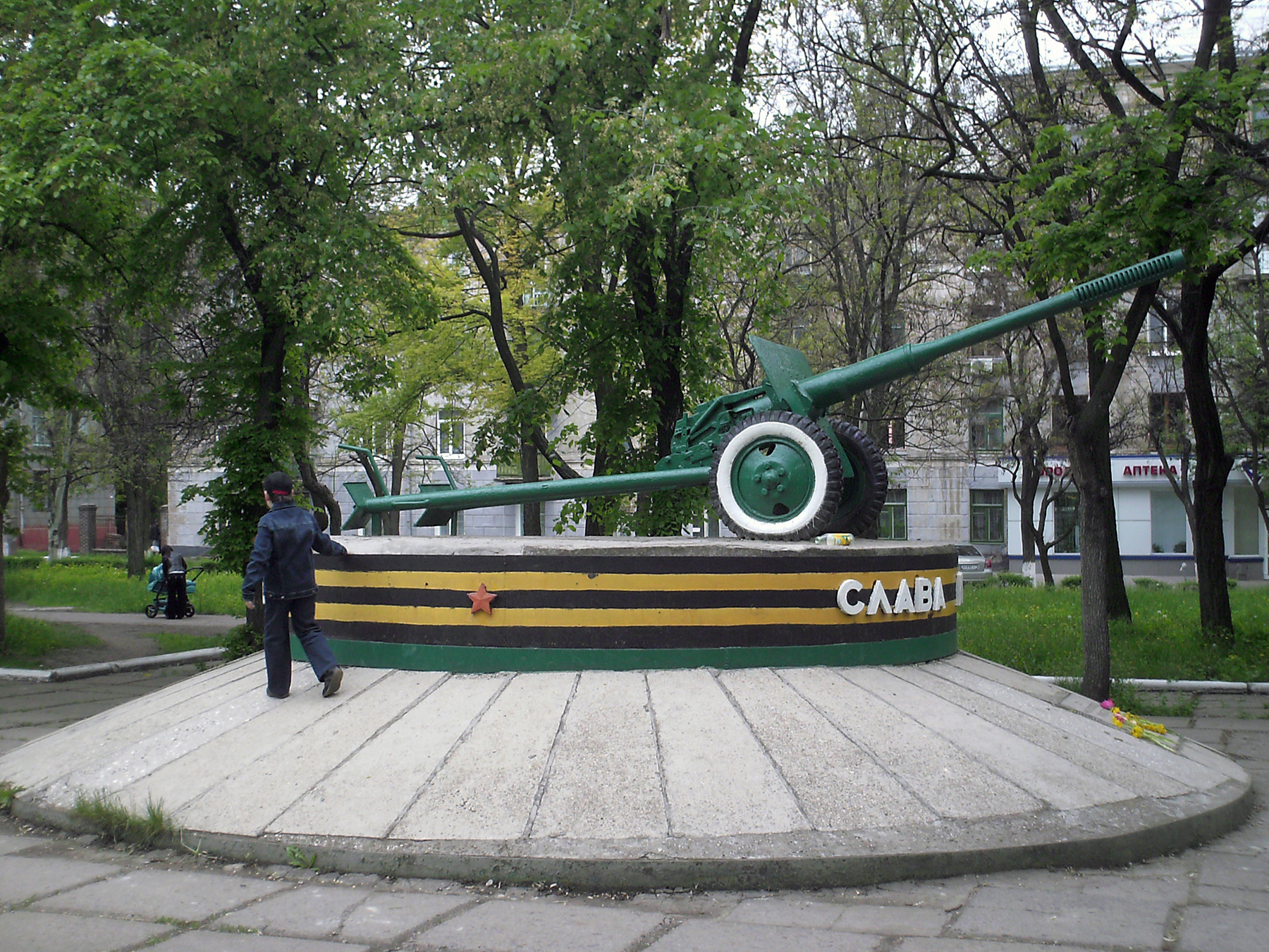 9 мая 1974 — Пушка от воинов-освободителей Новоград-Волынского танкового полка — ул. Дружбы и Героев Украины, архитектор В. Е. Роговец (ГАП Краматорского отдела «Донбассгражданпроекта»)