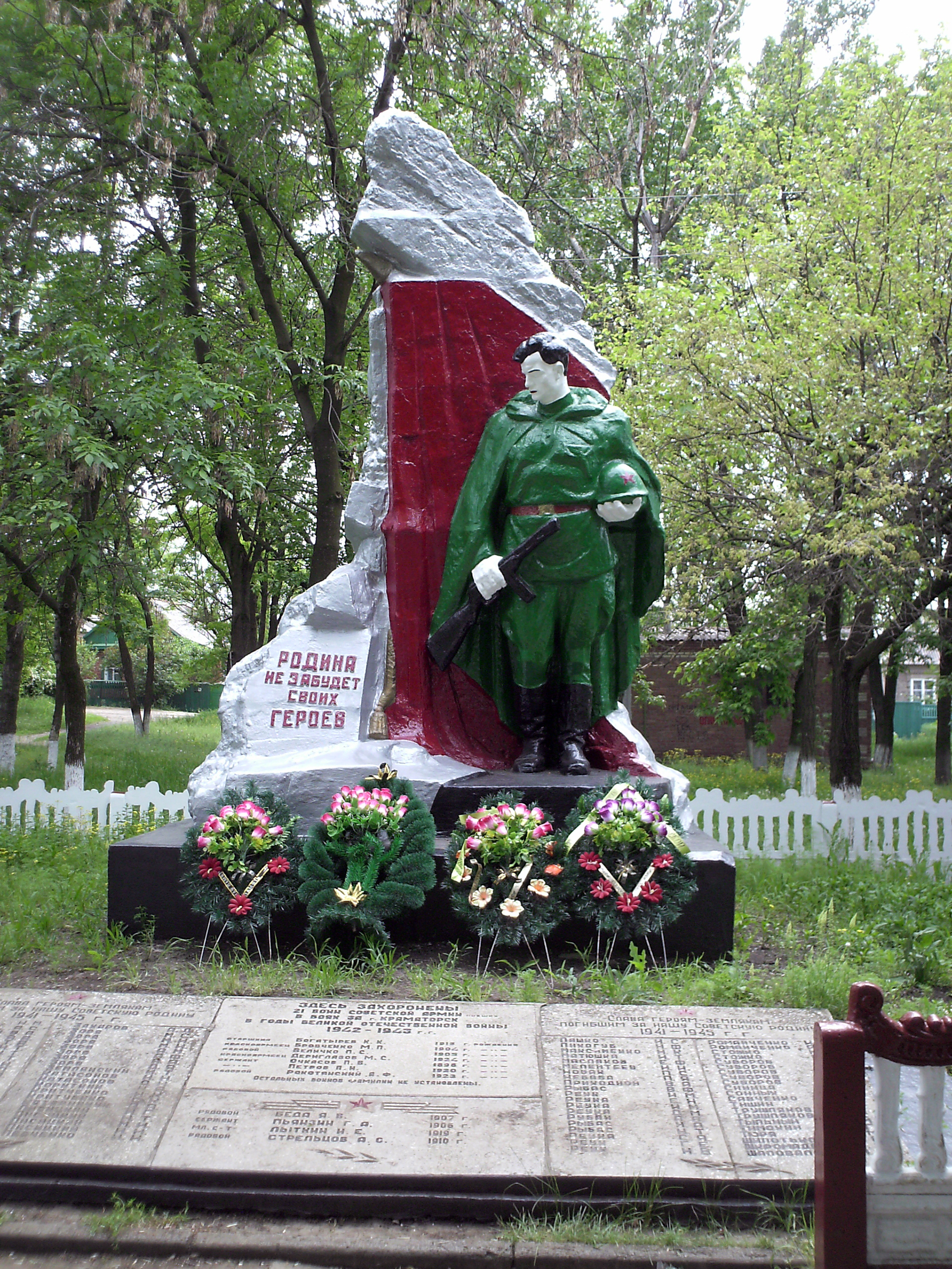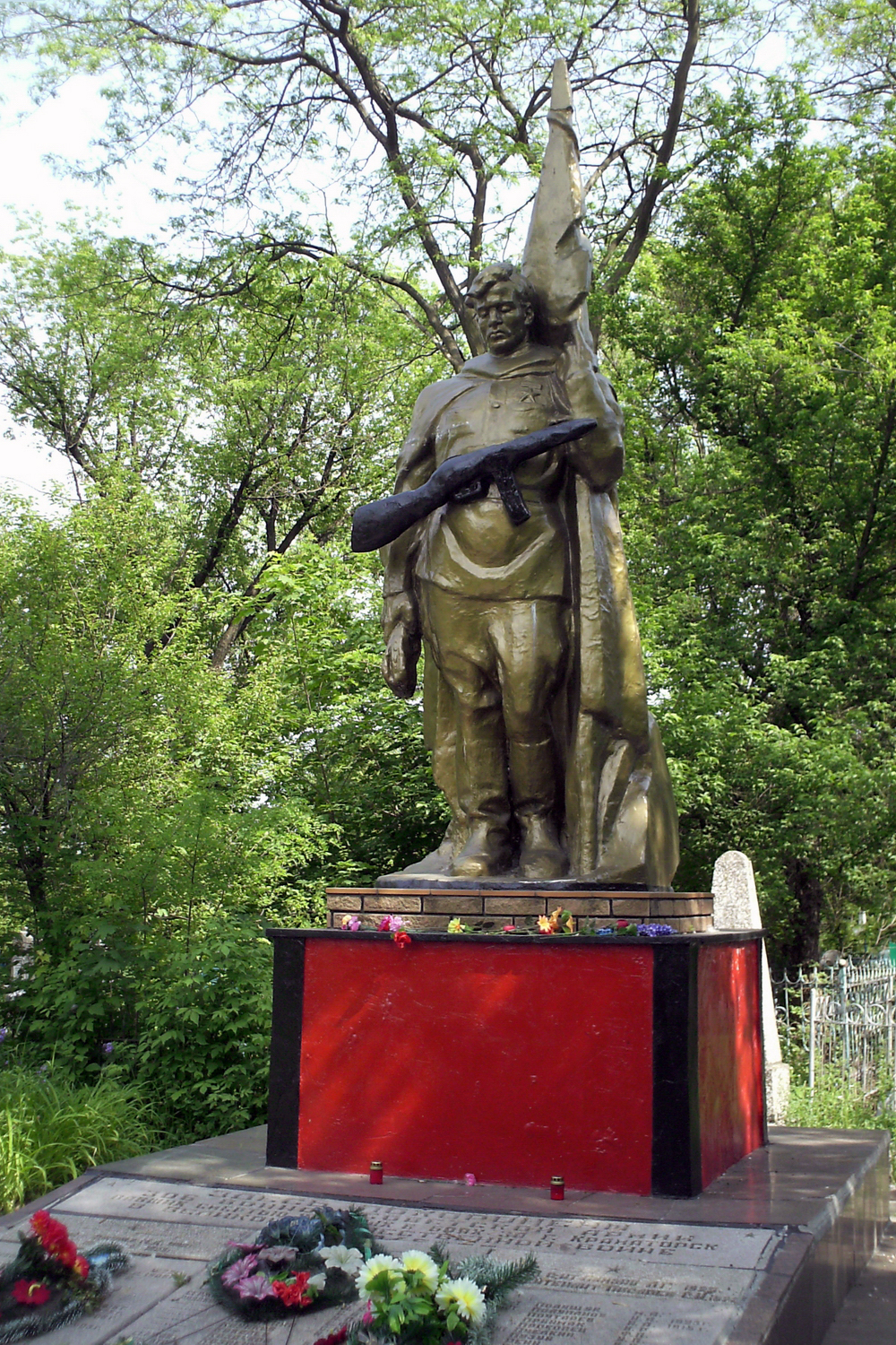 1947, заменён в 1995 — Братская могила 60 красноармейцев-освободителей города — Весёлый, ул. Кошевого, во дворе 18-й школы (автор И. И. Базилевский)