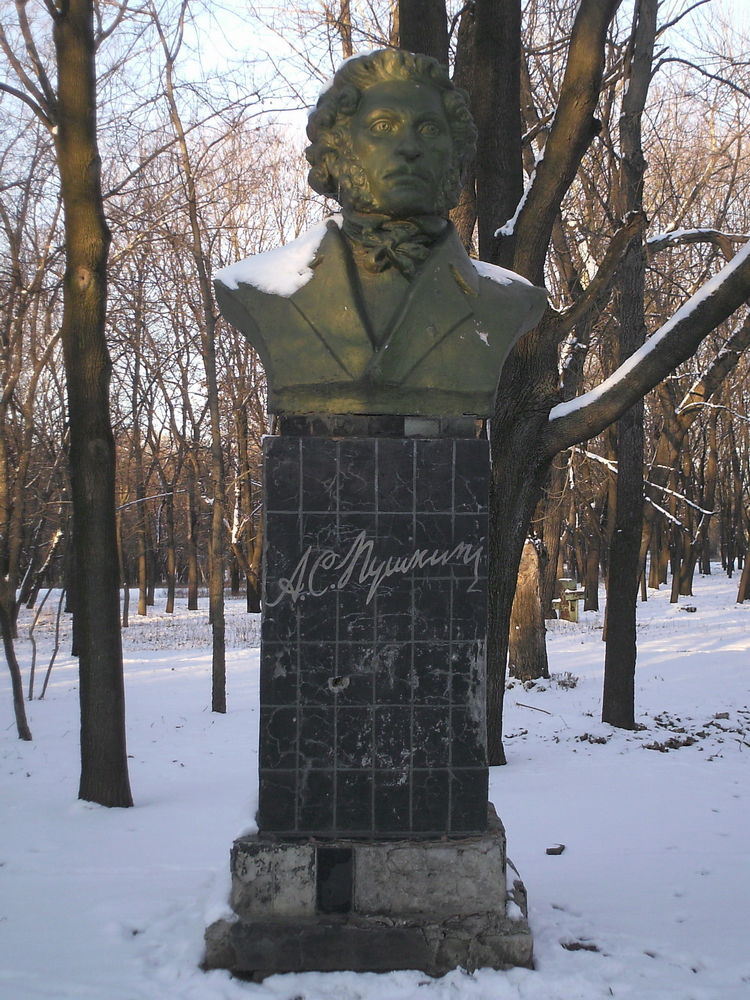 А. С. Пушкину — вход в парк Пушкина с ул. Дружбы (скульптор А. Н. Нетяженко). Демонтирован 30 декабря 2022