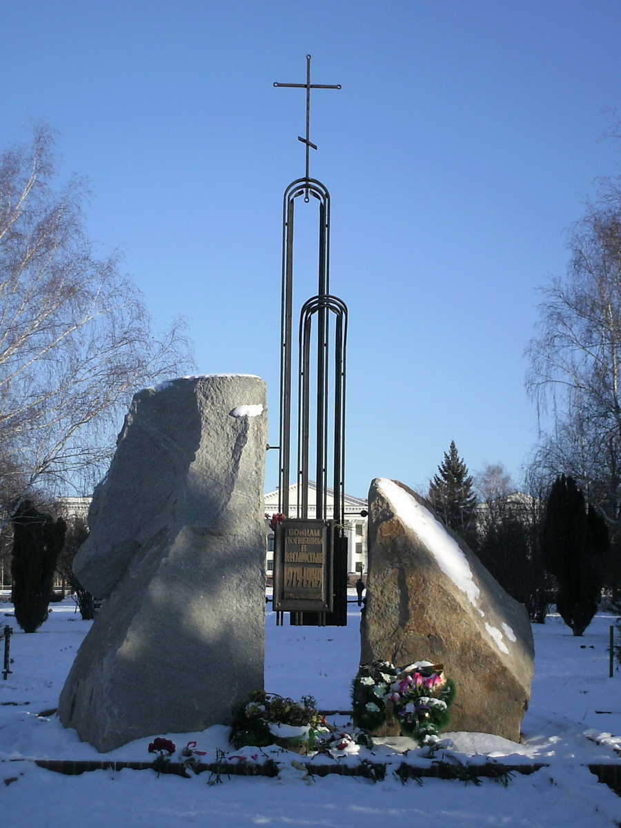 9 мая 1998 — Погибшим воинам-интернационалистам («афганцам») — пр. Мира, скульптор В. Гутыря.