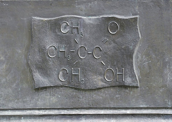 С левой боковой стороны постамента выведены формула 2,2-диметилпропановой или пивалевой кислоты[5][6], также известной как триметилуксусная кислота[7]. Наличие этой химической формулы на памятнике обосновано тем, что «необычное строение триметилуксусной кислоты позволило доказать основные положения теории химического строения вещества, чем и прославился Александр Михайлович Бутлеров»[7].