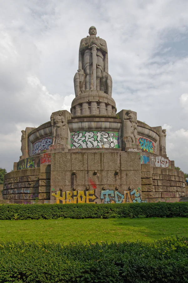 Это самый большой из 240 памятников Бисмарку, расположенных по всему миру. Статуя 35 метров в высоту, выполнена из гранита. Строительство началось в 1903 году и продлилось 3 года. В период Нацистской Германии полости мемориала, изначально служившие для вентиляции, были расширены для создания бомбоубежища. В 2019 году памятник был отремонтирован.