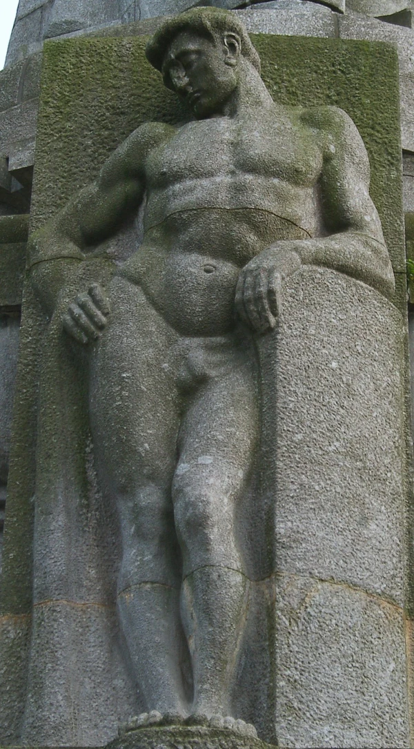 Во время Второй мировой войны с 1939 по 1941 год полости мемориала были расширены под бомбоубежища вместимостью до 950 человек, местные власти дополнительно залили в конструкцию 2200 тонн бетона для её укрепления. После 1941 года в конус круглого помещения была помещена золотая свастика. На стене был нарисован огромный орёл, держащий в когтях дубовый венок. Внутри этого венка, вероятно, находится выбеленная свастика. В интерьере есть и другие фрески, в том числе гербы и свастика в виде солнечного колеса[5][6]. В 1954 году вокруг статуи были посажены деревья, которые срубили в 1994 году[7].