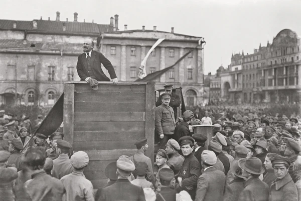 Основой образа «Ленин на трибуне» послужило реальное событие 5 мая 1920 года — выступление В. И. Ленина в Москве во время проводов частей Красной Армии на Советско-польскую войну, по итогам которой была провозглашена Белорусская Советская Социалистическая Республика.