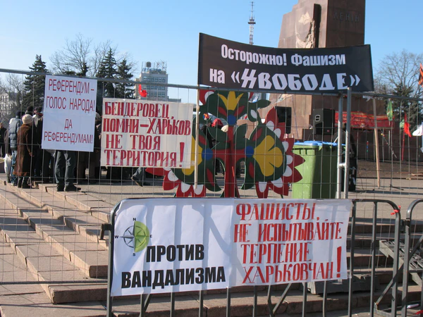 На следующий день после разрушения памятника, на площади Свободы, возле постамента, на котором стоял памятник Ленину, собралось несколько сотен харьковчан, не согласных с разрушением памятника. Участники данного собрания отмыли постамент от нарисованной символики Украины и националистических лозунгов, замазали и закрасили высеченную на постаменте надпись «Слава Украине», а также возложили живые цветы к подножию[53].