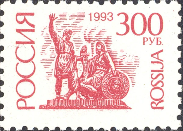 В Российской Федерации стандартный выпуск с памятником вышел в 1992 году в художественном исполнении Владислава Коваля, ещё два года марка печаталась с тем же рисунком, но в другом цвете и номинале: 60-копеечная серо-зелёная была заменена 300-рублёвой красно-лиловой[92][93]. В 2012-м была напечатана собственная серия «Памятник К. Минину и Д. Пожарскому в Москве» стоимостью 9 рублей 20 копеек. Изобразил памятник художник Александр Поварихин[94]. К 150-летию Русского исторического общества в 2016 году вышла марка стоимостью 19 рублей, также оформленная Поварихиным, с памятником предводителям второго народного ополчения 1612 года[95][96].