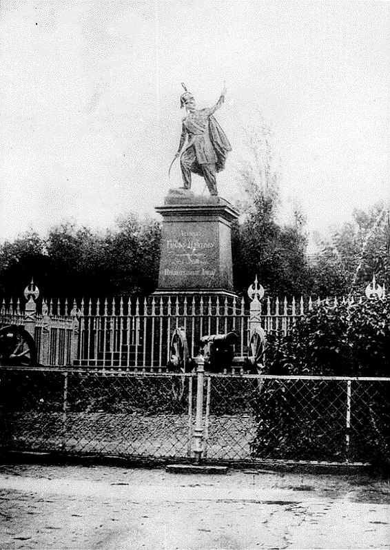Вместо умершего в 1848 году А. А. Иванова к проекту был подключен в 1849 году Н. А. Токарев, который выполнил статую военачальника, отлитую затем П. К. Клодтом.[1]